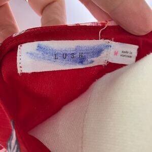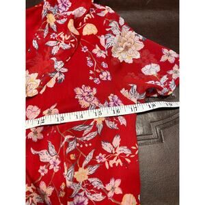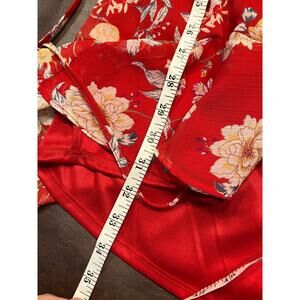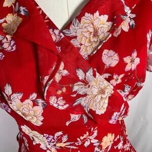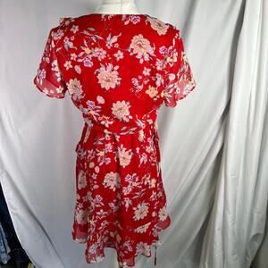 Lush Red Floral Wrap Dress Women's Medium Short Sleeve Ruffle Chiffon Lined