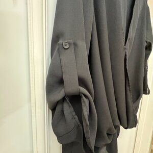 Style: Black shirts, Black Blouse, Faux Wrap, V Neckline, Hi-lo, Convertible Sleeve, Flowy, Relaxed, Versatile, Casual, Work, Office, Dress Up, Going Out, Night Out.