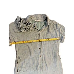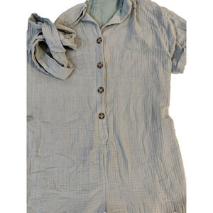 Lush Romper Womens Medium Blue Button Front Short Sleeve Tie Waist Playsuit Cuffed