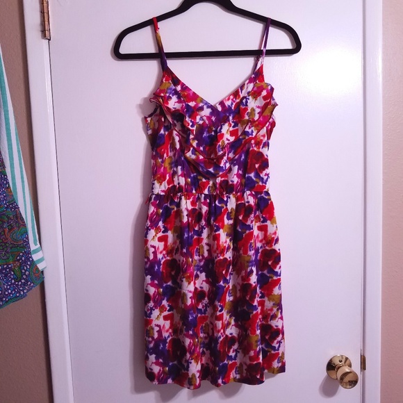 Adjustable cami straps(length photo reflects fullest possible length). Waistband 17" fully extendeds. Lined. Pet-free, smoke-free home.