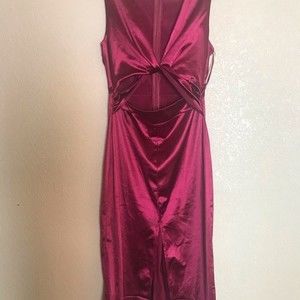 Lush Satin Cutout Burgundy Cocktail MIDI Dress