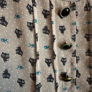 Lush Sheer Cat & Fish Ruffle Tank Size L