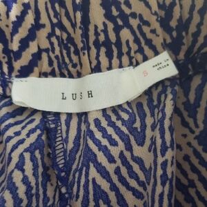 Stylish dress by Lush. Features a striking blue and tan pattern. Perfect for any occasion.