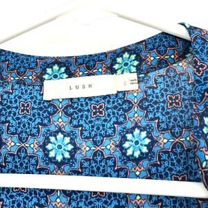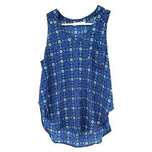 Lush Size Small‎ Blouse Blue Abstract Sleeveless Tank Lightweight Loose High Low