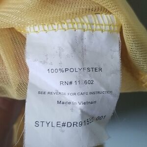 Has pockets! Semi sheer on top. Has cuffed sleeves. Thin lightweight fabric no stretch. Scoop back with a strap across the upper back. Bottom is lined. Waist has elastic. Super cute dress. Chiffon style. Some faint writing on tag, doesnt affect wear. I dont see any flaws. Easter, summer, pastel, colorful, flirty, picnic, park, brunch, spring, casual, church, vacation