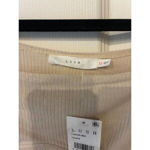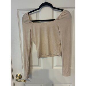 Lush Taupe Ribbed Long Sleeve Square Neck Crop Top XS