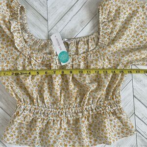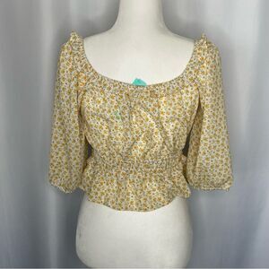 Lush Tayla Smocked Puff Sleeve Crop Blouse size Small