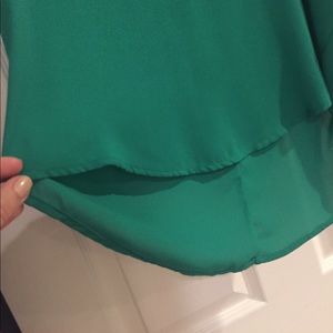 Emerald green flowy top. Cuff sleeves. Longer in back. Size medium. Like New Condition.
