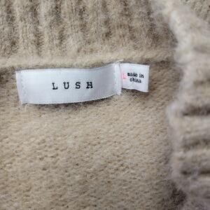 Lush Tunic Sweater Womens Large Beige Black Dash Knit Soft Long Stretches