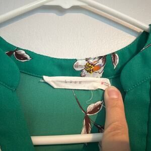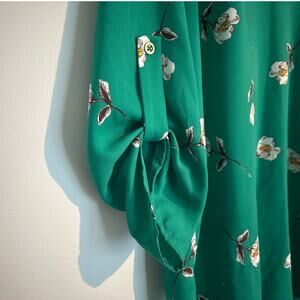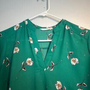 Lush V-Neck 3/4 Sleeve Blouse, Green Floral, Women’s Medium