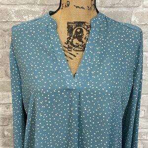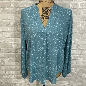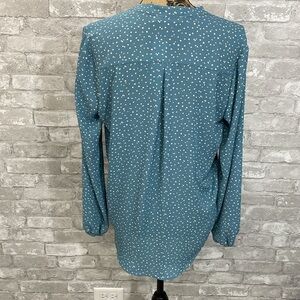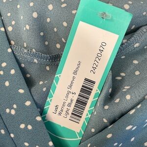 Lush blue polka dot blouse NEW WITH TAGS VNECK Hi low hem
