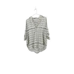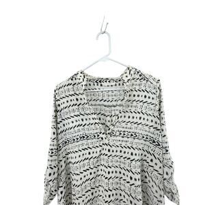 Lush White & Black Printed Popover Blouse Women's Size Small