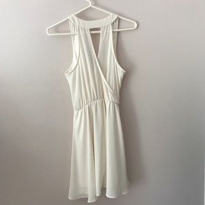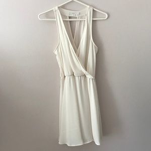 In excellent condition (worn once for a nice event). Very flattering and perfect to go to a dressier event. I'm 5'11 and it goes a little longer than mid-thigh. Has liner underneath so not see-through.