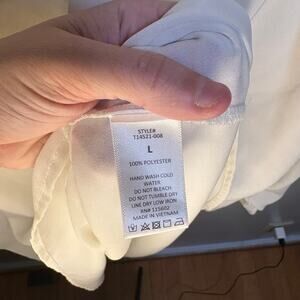 Lush White Semi-sheer 3/4 Sleeve V Neck Blouse Large Feminine Flowy Spring Light