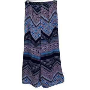 Lush Wide Leg Palazzo Pants Women's Medium Multicolor Geo Abstract Tribal High Rise