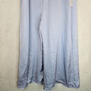 Lush Women Maxi Romper Sz S Lilac-Blue Satin Soft Lined Zip & Tie Back Wide Leg