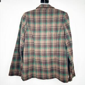 Lush Womens Business Preppy Plaid Wool Blend Double Breasted Blazer Jacket in Cedar Pine Chocolate Brown. Size Small