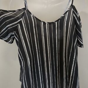 Lush Women's Cold Shoulder Black and White Striped Women's Top Size M , normal wear pre-owned great Condition