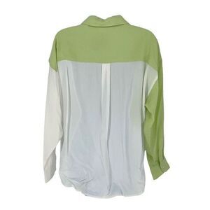 Lush Womens Colorblock Long Sleeve Button Down Shirt Lime Green White Small NWT