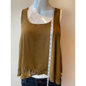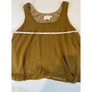 Lush Womens Cropped Tank Top LT10608-S01 Beaded Scoop Neck Mustard Size Small
