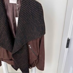 Lush Women’s Draped Faux Suede and Sweater Brown Open Front Moto Jacket Sz L