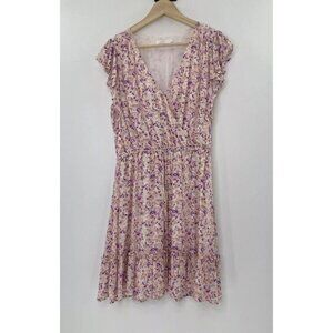 Lush Women’s Floral Faux Wrap Ruffle Flutter Sleeve Dress Sz L Fairycore Cottage