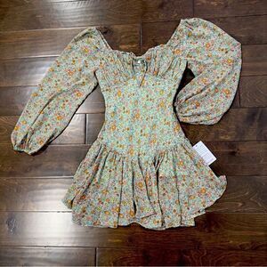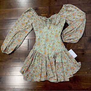 Lush Women’s Floral Long Sleeve Drop Waist Mini Dress in the Size Small in Sage Color