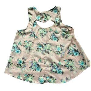 Lush Womens Light Weight Floral Tank Top with Heart Cut-Out Back-Pink-Medium-GUC