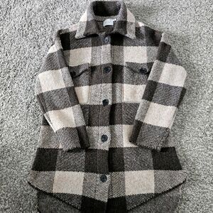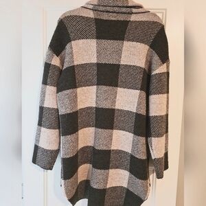 Super Soft and Warm Long Plaid Oversized Button-Up Cardigan. Collared Neckline with Pink, Brown, and Hints of White Throughout. Two Front Chest Pockets with Button Closure. Great for Casual or More Dressy Attire.