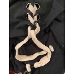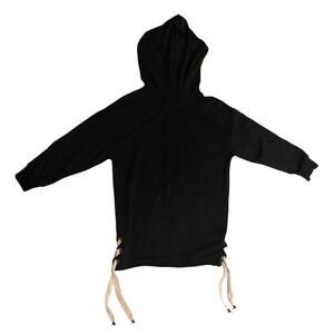 Lush Women's Long Oversized Hoodie Sweatshirt Size S. Warm and cozy pullover sweatshirt Long and Oversized with Braiding on the sides in white that matches the tie close at the neck. No stains or tears or any sign of wear. Excellent Used Condition.