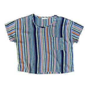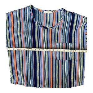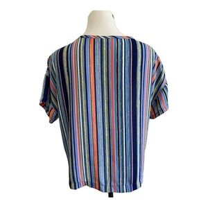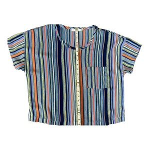 Lush Women’s Multicolored Striped Chiffon Chest Pocket Top Blouse Size Small