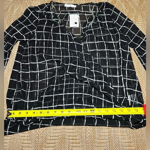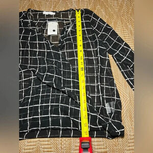 Lush Women's Sheer Black and White Checkered Blouse, Long Sleeve, Size M, NWT