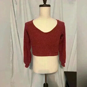 Lush Women’s Size S Cropped Sweater. Long Sleeve. Poly Blend. Burgundy