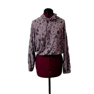 Lush Womens Top Size Medium Animal Print Funnel Cowl Mock Neck Crop Draw…