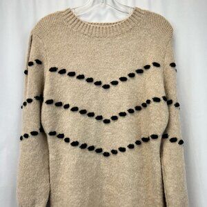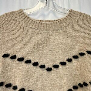 Lush Womens Tunic Sweater Beige Black Long Sleeve Jewel Neck Waffle Knit Small