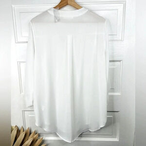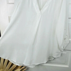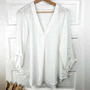 Lush Womens V-Neck Tunic Blouse Roll Tab Sleeves White Size L Casual NWOT