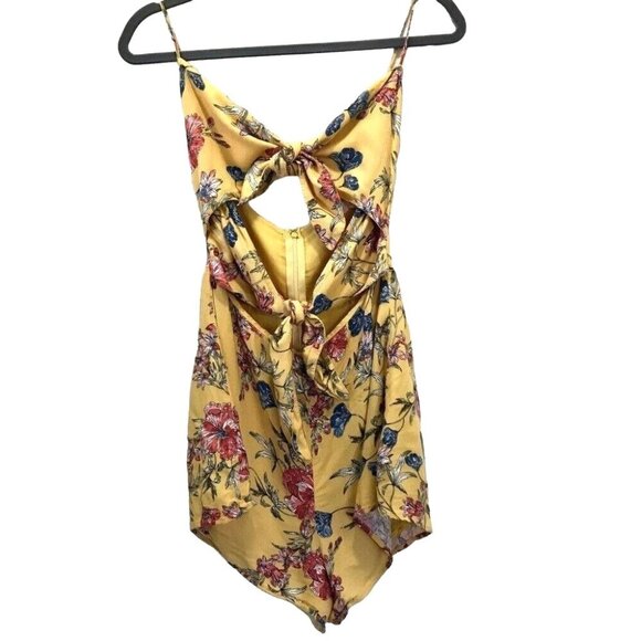 Lush Women's Yellow Floral Beachy Romper w/ Cutouts Double Tie Front Size Small