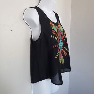 Lush XS Black Chiffon Tank Top Sleeveless Blouse Western Embroidery Keyhole