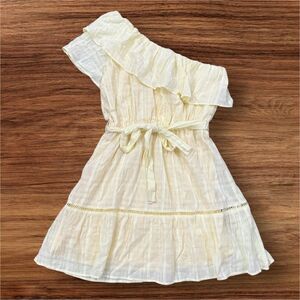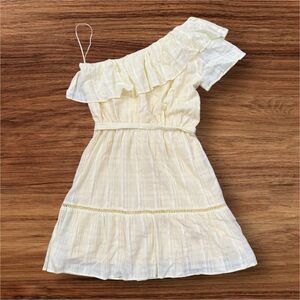 Embrace effortless style with this Lush sundress, featuring a chic one-shoulder neckline and flutter sleeves. The yellow color and flowy design make it perfect for casual outings or resort wear, while the tie waist adds a flattering touch.