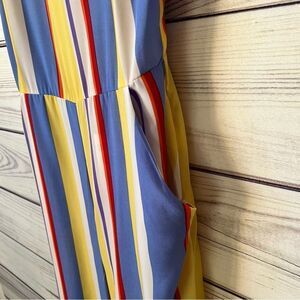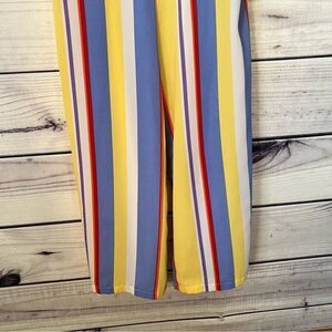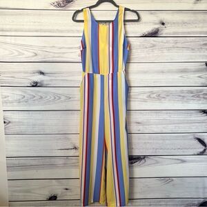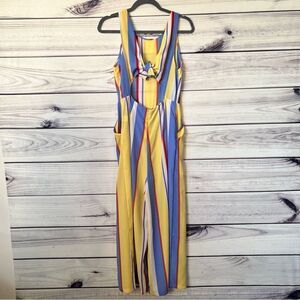 Lush Yellow & Periwinkle Striped Wide Leg Open Back Jumpsuit