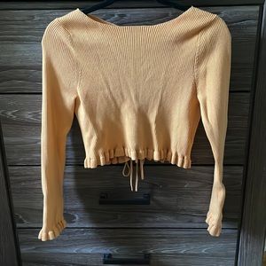 Lush Yellow Ribbed Ruffled Tie Back Sweater