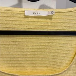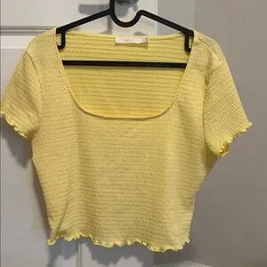 Soft yellow ribbed top with short sleeves. Simple and stylish design.