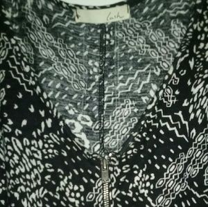 Totally cute Top by Lush. shirt has a deep v-neck zipper a cute black and white geometric design and a very fun and flirty butterfly shape. great condition great deal found at Nordstrom's.