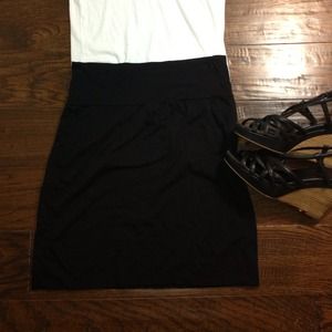 This is a very thin stretchy cotton skirt that goes mid thigh and is tight, but can be stretched out. I bought this piece at By George the fashion stylists told me it is meant to be a layering piece. I was never fashionable enough to figure that out so I just tuck think shirts into it so you can't see the line of the Tshirt underneath! Very very comfortable, one size