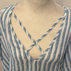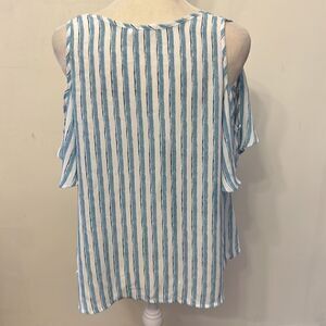 Lush blue white striped cold shoulder V neck blouse Size M EUC