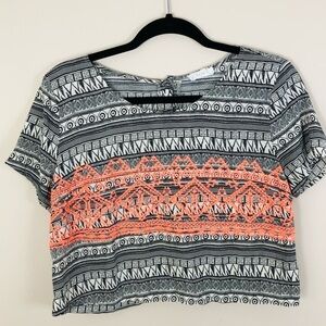Lush by Anthropologie geometric tribal design crop top women’s size Large
