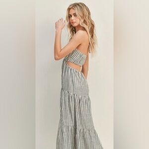 Lush cream/ navy Sail Abroad cotton blend halter cutout maxi dress