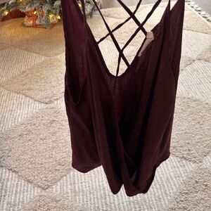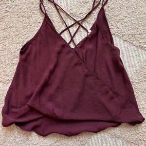 Spaghetti strap eggplant color top. Size small. Criss-cross straps. Bubble hem in the front. So cute with jeans!