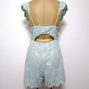 Great pre-owned condition. Adorable Lush sage embroidered romper, fully lined, cutout back, side zip. Smoke free, pet friendly home.