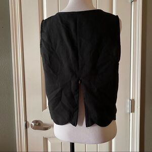 Beaded neckline with a zippered back closure. Sleeveless top with scalloped hemline. Cropped length.